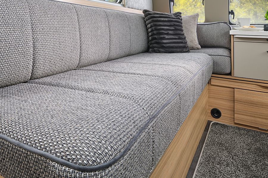 Aquaclean kumaşlı, evcil hayvan ve çocuk dostu standart ‘Lima’ döşemeler; uyumlu perde panelleri ve yastıklarla