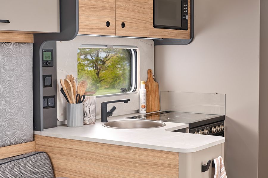 Tam donanımlı mutfak, Thetford 137L dikey buzdolabı ile
