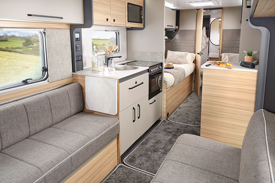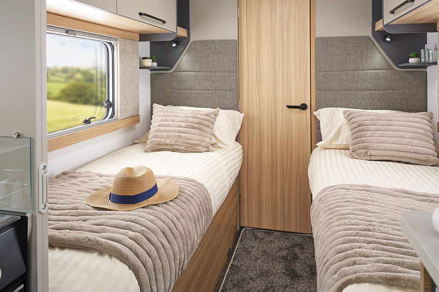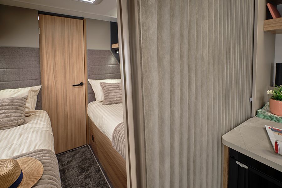 Standart ‘Echo’ yumuşak döşemeler, uyumlu kumaş pencere panelleri, iki bolster ve iki dekoratif yastık ile
