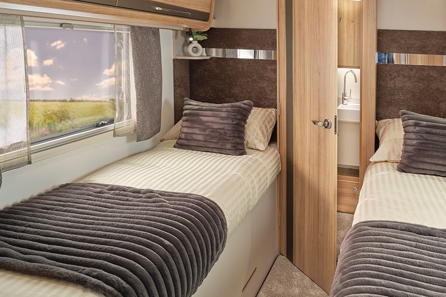 Tek akslı, 7’5” genişliğinde model; paralel oturma düzenine sahip ön salon ve arkada iki tek kişilik yatak ile 4 kişiye kadar uygun