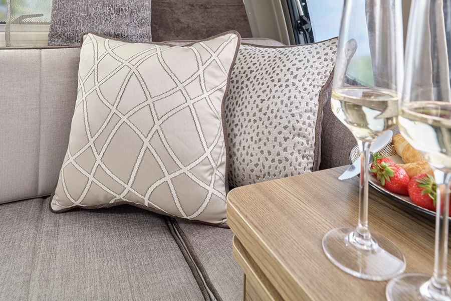 Aquaclean kumaşlı, uyumlu perde panelleri ve yastıklarla opsiyonel ‘Jasmine’ döşeme